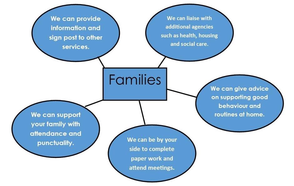 My role in school is to provide support, advice and information to the families within our school community. I can help you with any worries that you may have in relation to your child's education, behaviour and wellbeing. I am also here to listen and signpost you to other services in the local area.