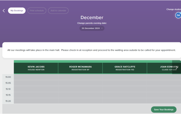 The child you are booking for will show in the top right-hand corner of the screen. If you have more than one child at our school, you will see a circle for each child. Simply click on the relevant circle to select the child you want to make a booking for.